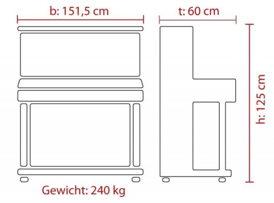 A 122-es modell drágább és exkluzívabb testvére. A gyár célja, egy dizájn hangszer létrehozása, mely magasságával hordozza a zongorák közkedvelt hangzását. Magas kivitele miatt már nagyobb termekben is megfelelő hangzást kelt, gyönyörű basszusokkal és csengő magas hangjaival egy nagyon élvezhető zongorajátékot biztosít.