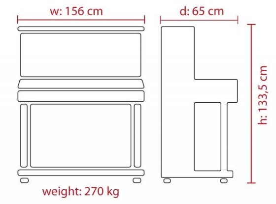 A gyár legmagasabb hangszere, egy igazi koncert pianínó. Óriási, öblös hangzással, a kisebb koncerttermek hangszere is lehet. Aki nem tud befektetni egy zongorába, vagy helyszűke miatt nem veheti azt igénybe, ez az a pianínó mely alternatívaként megfelelő hangszer lehet számára. Gyönyörű basszusokkal és csengő magas hangjaival egy zongora hangzását kelti.